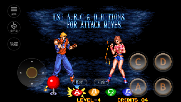 1、操作适配触屏,虚拟摇杆按键布局合理,出招流畅,再现街机硬派手感。