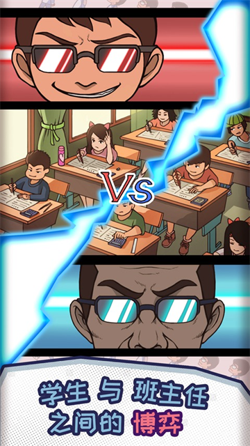 班主任模拟器最新版是一款以校园生活为背景,融合了寻物解谜与放置养成元素的休闲模拟游戏。在游戏中,您将扮演一位造型经典、发型独具特色的高中班主任,肩负起管理班级、纠正学生各种违纪行为的神圣职责。您的日常工作并非枯燥的说教,而是需要运用敏锐的观察力,在生动写实的校园场景中,找出那些偷吃辣条、上课玩手机、偷偷传纸条甚至试图翻墙上网的熊孩子,并通过合理的方式引导他们回归正轨。游戏以轻松幽默的卡通漫画风格,呈现了一系列接地气又令人会心一笑的校园剧情。