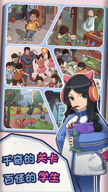 2、剧情紧密围绕校园日常,设计了大量如上课偷吃、传纸条等搞笑的违纪事件。