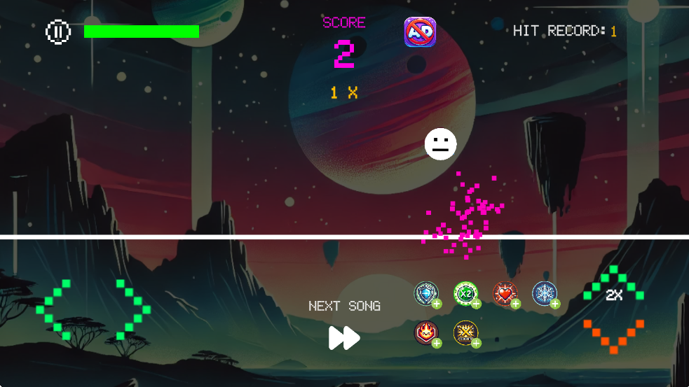3、经典模式需要玩家控制小球跳跃避免被方块击中,屏幕左上角是玩家的血量。