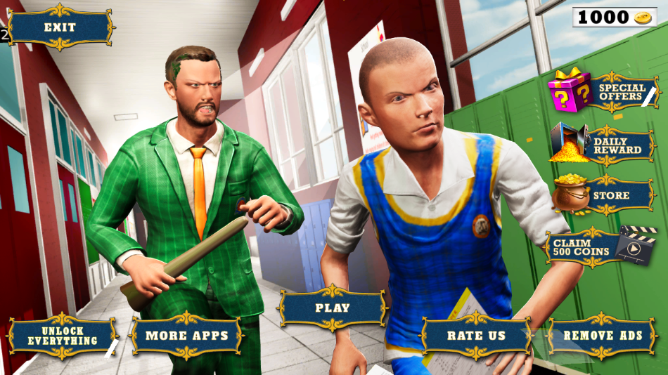 校园恶霸模拟器是一款以虚构校园为背景的开放世界动作冒险游戏,扮演15岁的叛逆少年吉米·霍普金斯,因多次被退学而被迫转学至此,既要应对学业压力,又要在复杂的校园帮派中周旋立足,最终凭借智慧与实力掌控校园秩序。第三人称视角搭配写实卡通画风,精准还原校园场景细节,从喧闹的教学楼、绿茵操场到静谧的宿舍楼道,每一处场景都充满生活气息与冲突可能。校园内划分多个特色帮派,书呆子、富家子弟、小混混等群体各有立场,玩家的每一个选择都将影响自身在各帮派中的声望,进而触发不同剧情走向。