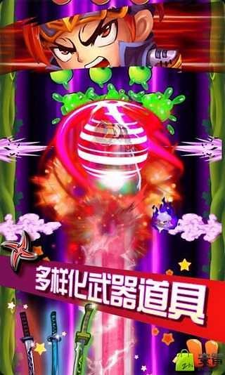 3.丰富水果类型与绚丽切割特效,果汁飞溅效果逼真生动,搭配专属音效强化感官愉悦感。