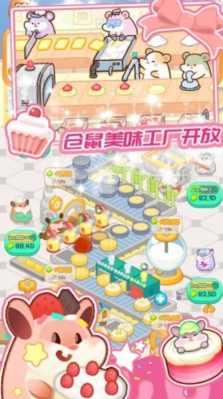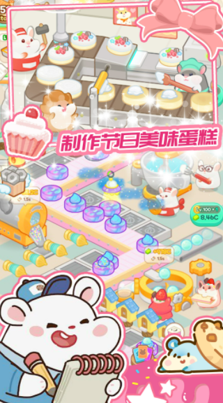 蛋糕梦工厂是一款以可爱小仓鼠为主角的卡通风格模拟经营游戏。在这里,你将与一群毛茸茸、圆滚滚的小仓鼠伙伴们携手合作,共同开启一段甜蜜又忙碌的创业之旅。游戏采用了经典的卡通Q版简洁模式,画面明亮温馨,每一个仓鼠员工都拥有呆萌的表情和活泼的动作,为整个经营过程带来轻松愉快的欢乐氛围。蛋糕梦工厂在传统模拟经营玩法的基础上,加入了更多特色元素,让整个蛋糕梦工厂变得更加鲜活。你需要在工坊中制作各式各样的美味蛋糕,从简单的纸杯蛋糕到精致的多层婚礼蛋糕,不断解锁新食谱。
