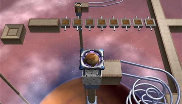 1、极简视觉风格却营造出强烈空间感,深色背景衬托着发光的轨道,让玩家能清晰聚焦于球体和机关的互动关系。