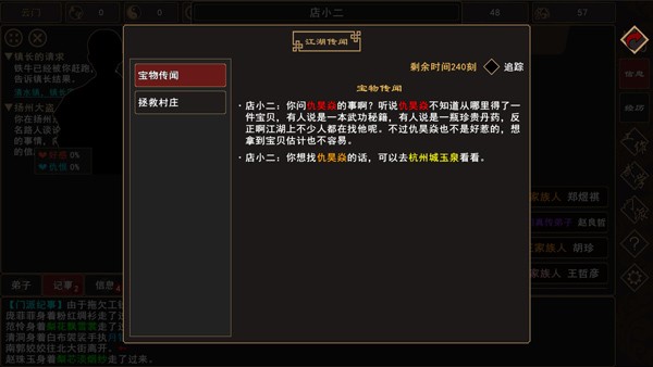 3.江湖探索与互动,带领弟子游历开放地图,结识各路豪杰、完成随机任务,参与官府悬赏,应对门派纷争与突发危机