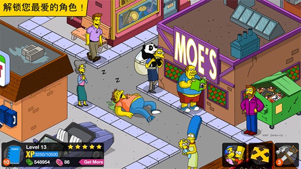 辛普森一家中文版对动画的还原已经到了痴迷的程度,每个角色的台词都像是从剧集里直接抠出来的,Homer的"d'oh"一出口,回忆瞬间涌上心头。建造玩法本身并不复杂,就是收菜、建房子、做任务的循环,但披上辛普森的外衣后,一切都变得有趣起来。让角色从事各种荒唐工作的任务设计充满恶趣味,比如让Homer连续吃甜甜圈吃到吐,让Bart恶作剧被抓住。